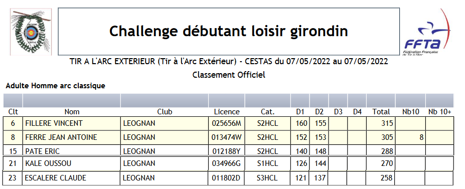 Résultats FFTA